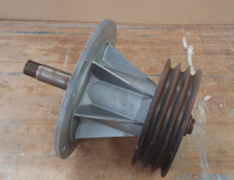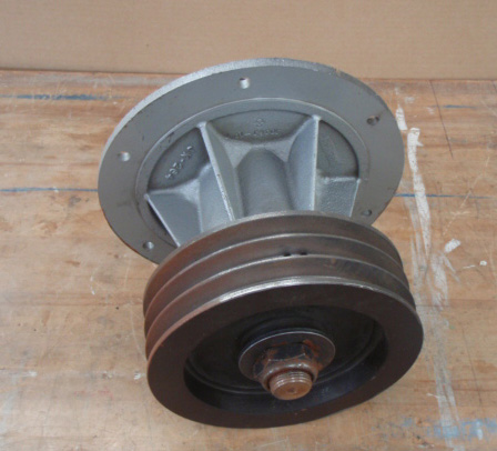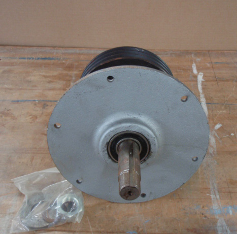 This unit is NOS, never installed, fully functional and ready to go. Some of the unpainted steel and cast iron surfaces have a bit of surface rust, nothing that affects it's functionality. The shaft diameter is 1-3/8", and the triple pulley has a diameter of 8-3/8". Included is the key, spacer, flat washer and 1-1/4-12 locknut for the fan. Fan is NOT included, this is only the bearing assembly as pictured.